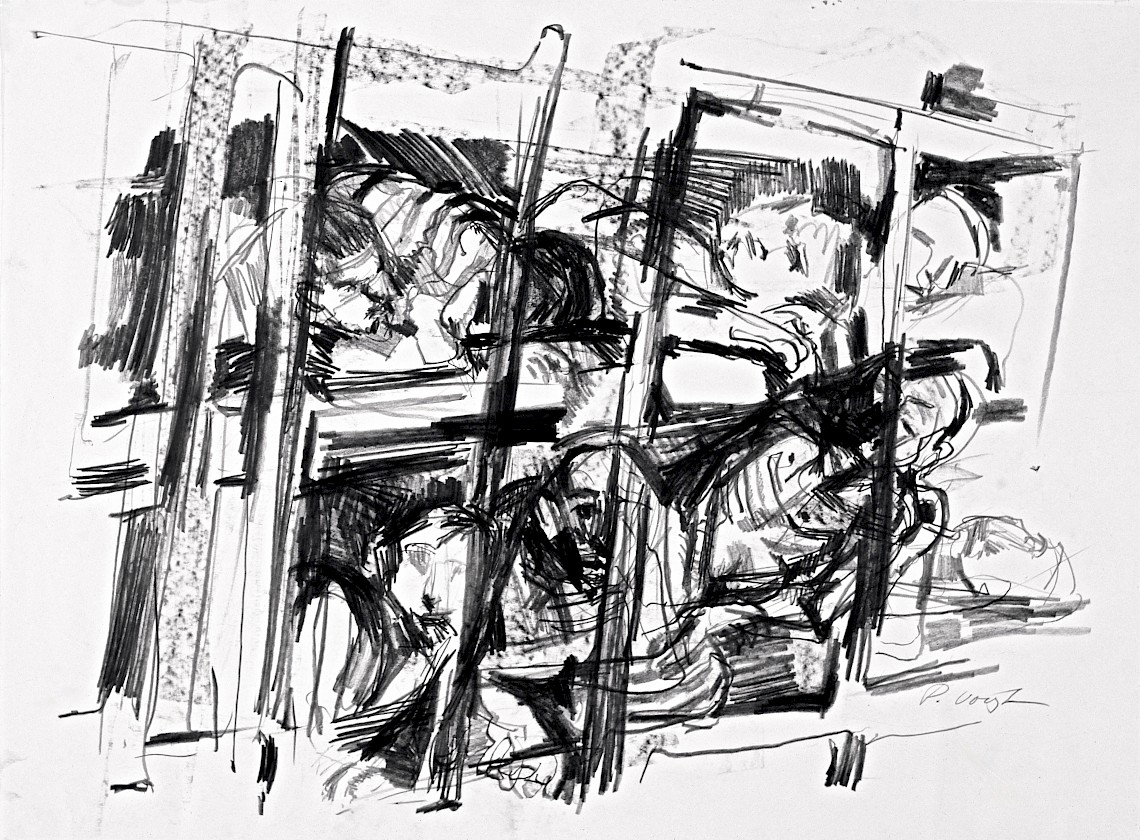 ![]() Gefangene, 1968 Grafit auf Zeichenkarton 60 cm x 80 cm |