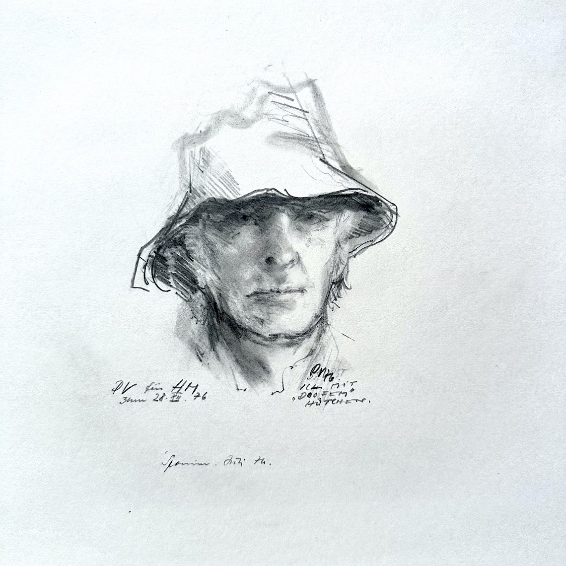 ![]() Ich mit "doofem" Hütchen, 1976 Grafit auf Zeichenpapier 25 cm x 25 cm |