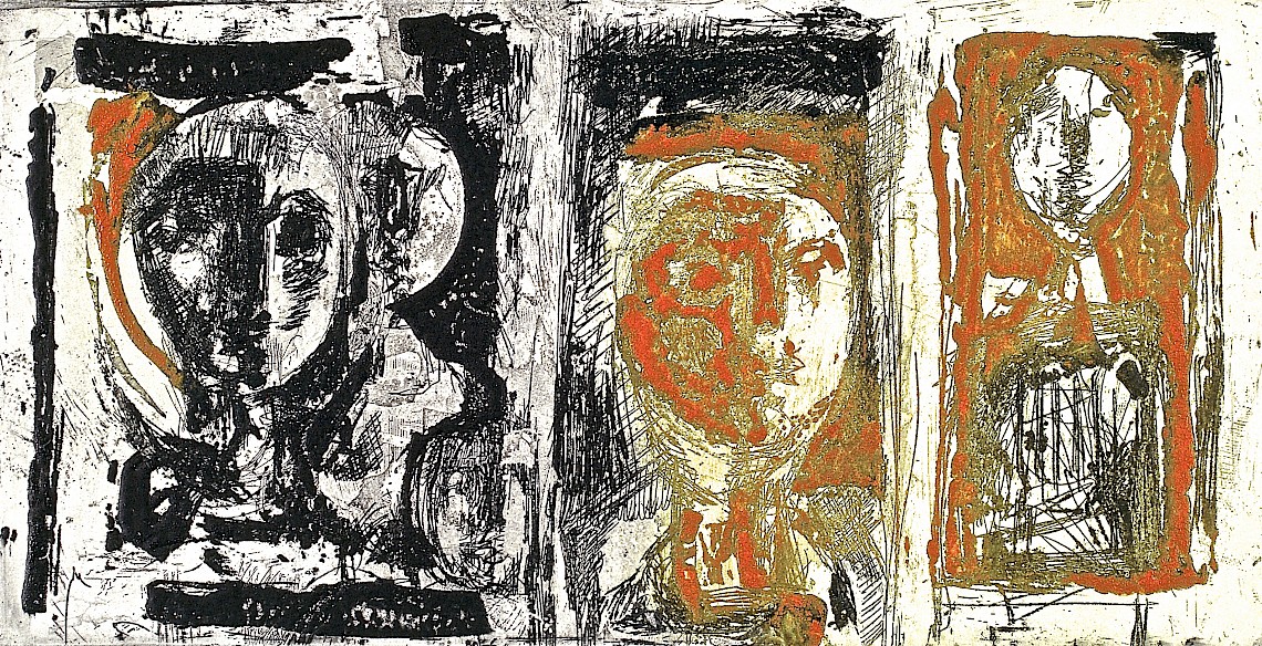 ![]() Kleine Familie, 1961 Radierung von zwei Platten, Tiefdruckfarbe auf Büttenpapier 11 cm x 22 cm |