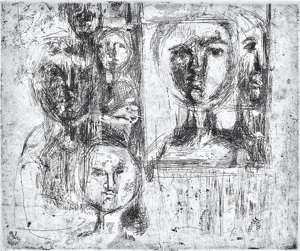 ![]() Zuschauer, 1961 Radierung von zwei Platten, Tiefdruckfarbe auf Büttenpapier 18 cm x 21,5 cm |