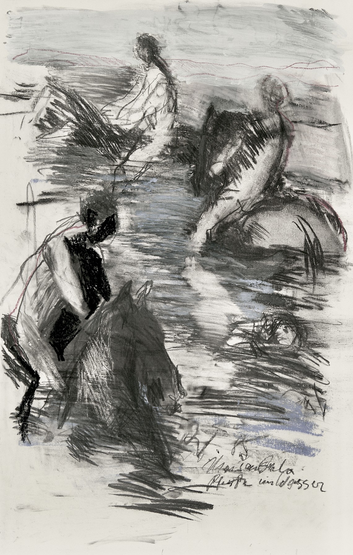 ![]() Maisansalo (Pferde im Wasser), 1985 Kreide und Grafit auf Zeichenkarton 57 cm x 37 cm |