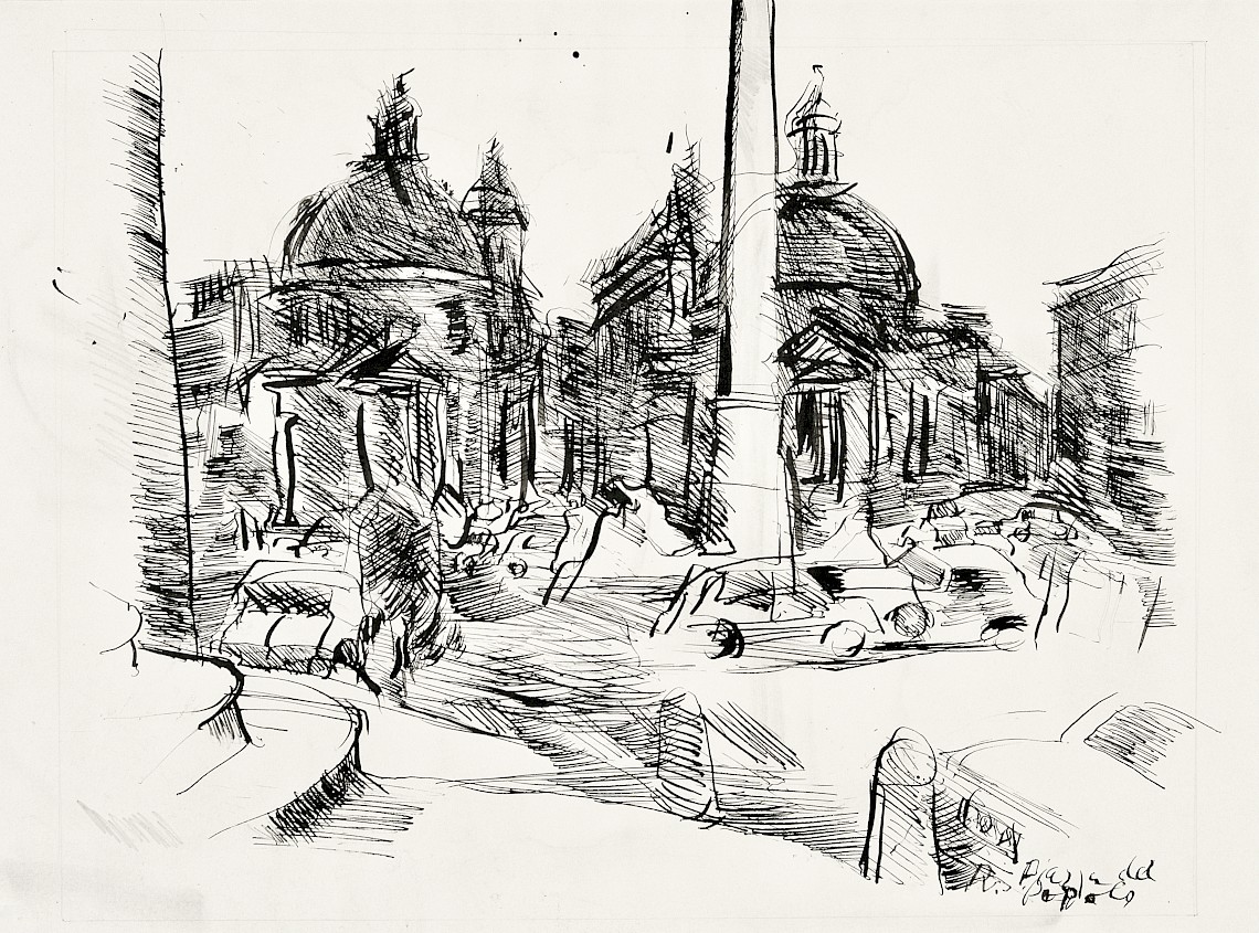 ![]() Piazza del Popolo, 1980 Tusche-Federzeichnung auf Papier 24 cm x 30 cm |