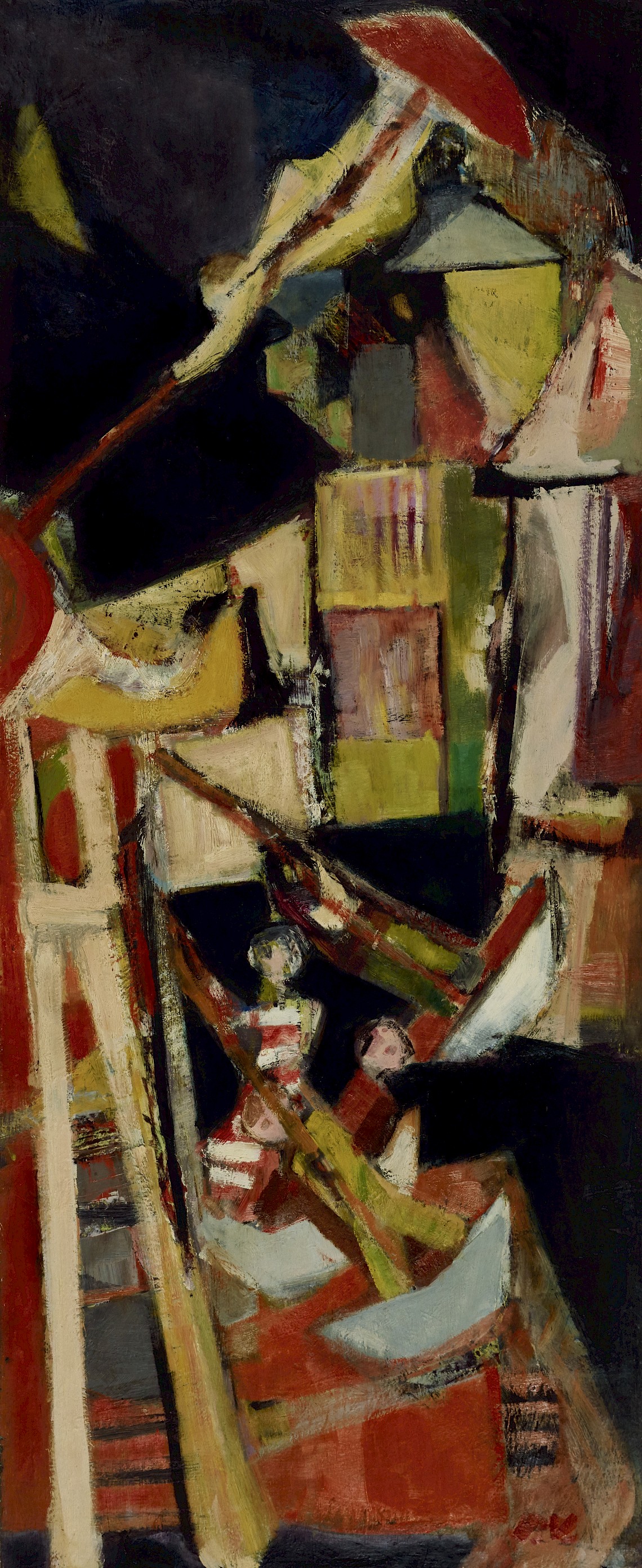 ![]() Luftschaukel, 1957 Ölfarbe auf Holzplatte 113 cm x 47 cm |