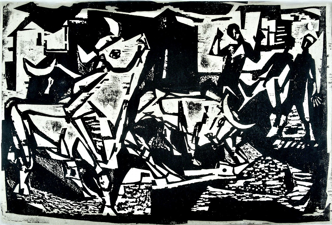 ![]() Stierkampf, 1952 Holzschnitt, Hochdruckfarbe auf Papier 53 cm x 81 cm |
