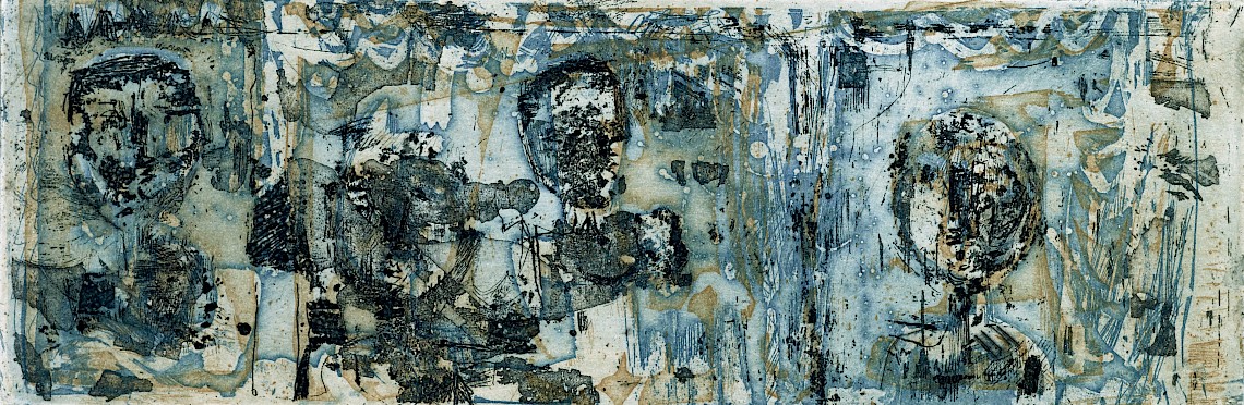 ![]() Theater, 1962 Aquatina von drei Platten, Tiefdruckfarbe auf Büttenpapier 12 cm x 34,5 cm |