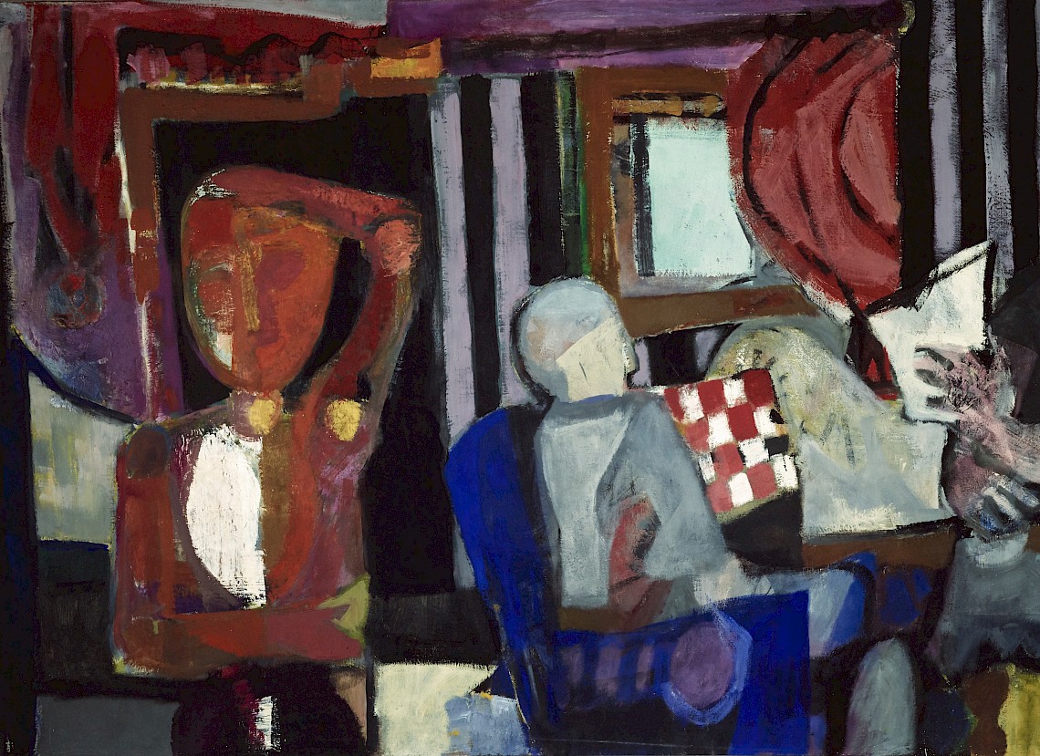 ![]() Vor der gestreiften Wand, 1955 Ölfarbe auf Leinwand 85 cm x 120 cm |